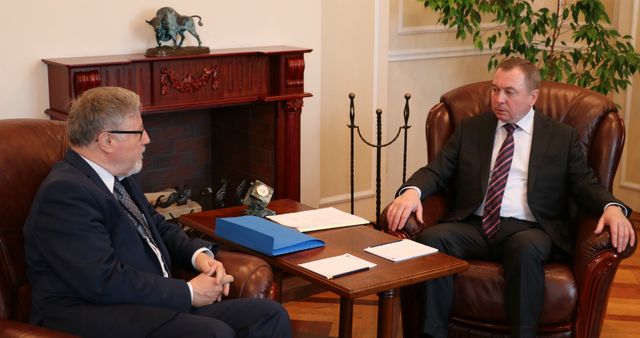 „Die Seiten erörterten aktuelle Themen des bilateralen politischen Dialogs, Zustand und Perspektiven der Entwicklung von Beziehungen im wirtschaftlichen, humanitären und kulturellen Bereich zwischen Belarus und der Schweiz. Der Außenminister begrüßte den Beschluss der schweizerischen Seite zur Erhöhung des Status der diplomatischen Vertretung in unserem Land bis zur Botschaft. Er äußerte die Hoffnung auf ihre fruchtbare Tätigkeit zur Stärkung der gegenseitig vorteilhaften Zusammenarbeit“, informierte das Außenministerium.